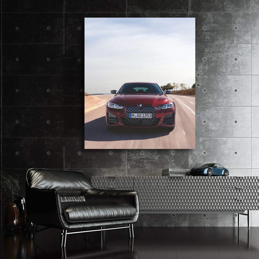 This wall art is not just a poster, it is a painting for those who breathe gasoline. Dark red BMW 4-series, in motion, like a wild animal on the road. For true connoisseurs of speed and style, who know what power is worth. See more from the collection: BMW 4 Series Art
