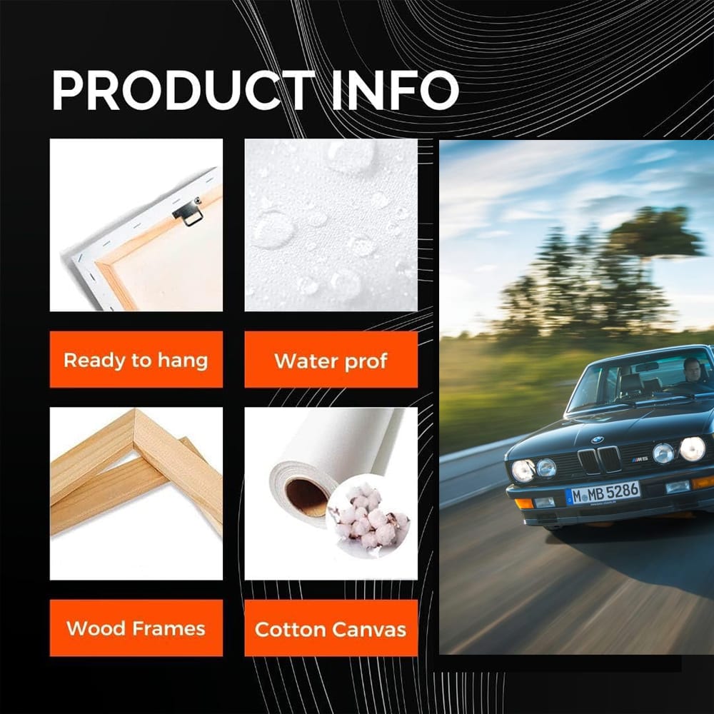 This poster is a real blast for BMW fans. The painting depicts the legendary BMW M5 E28 in motion, and this wall art simply screams power and style. Fire car, which still tears up the asphalt and the hearts of car lovers. See more from the collection: BMW 5 Series Art