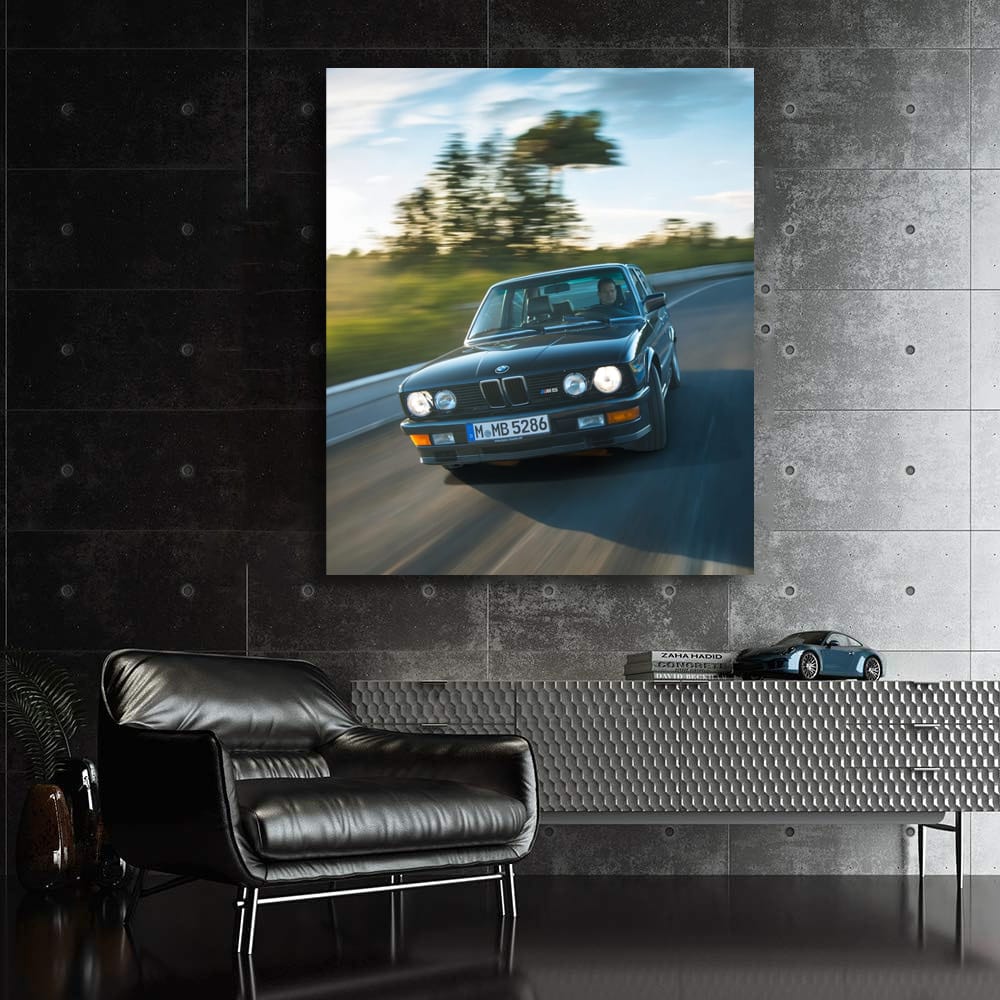 BMW E28 M5 in Motion - Iconic Performance Sedan Wall Art