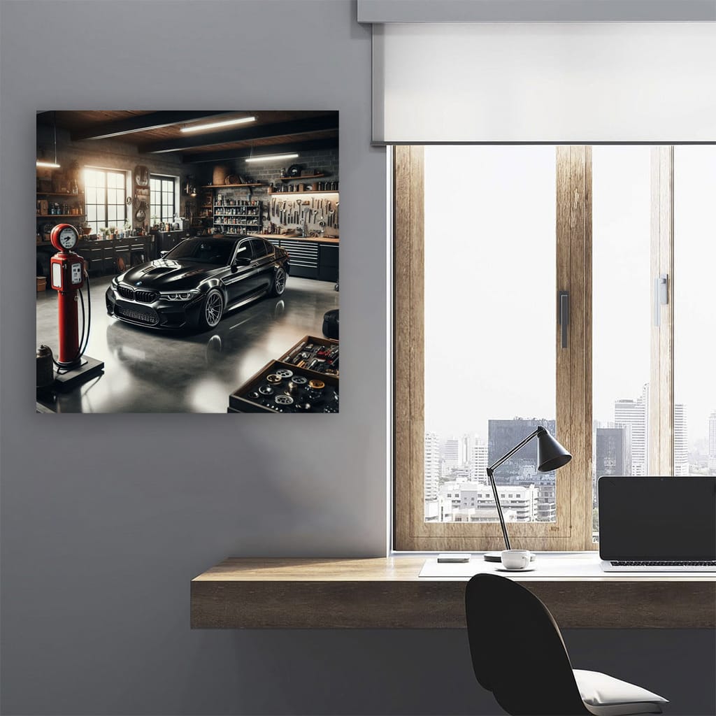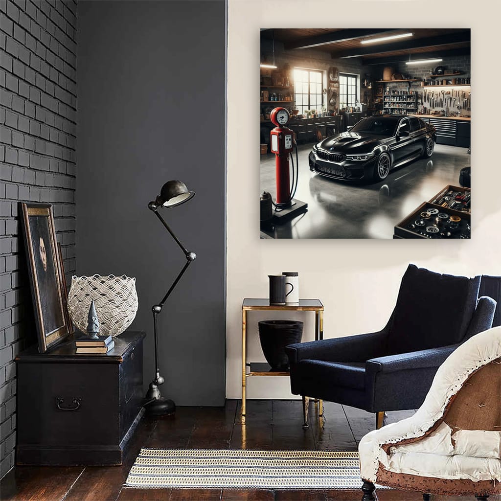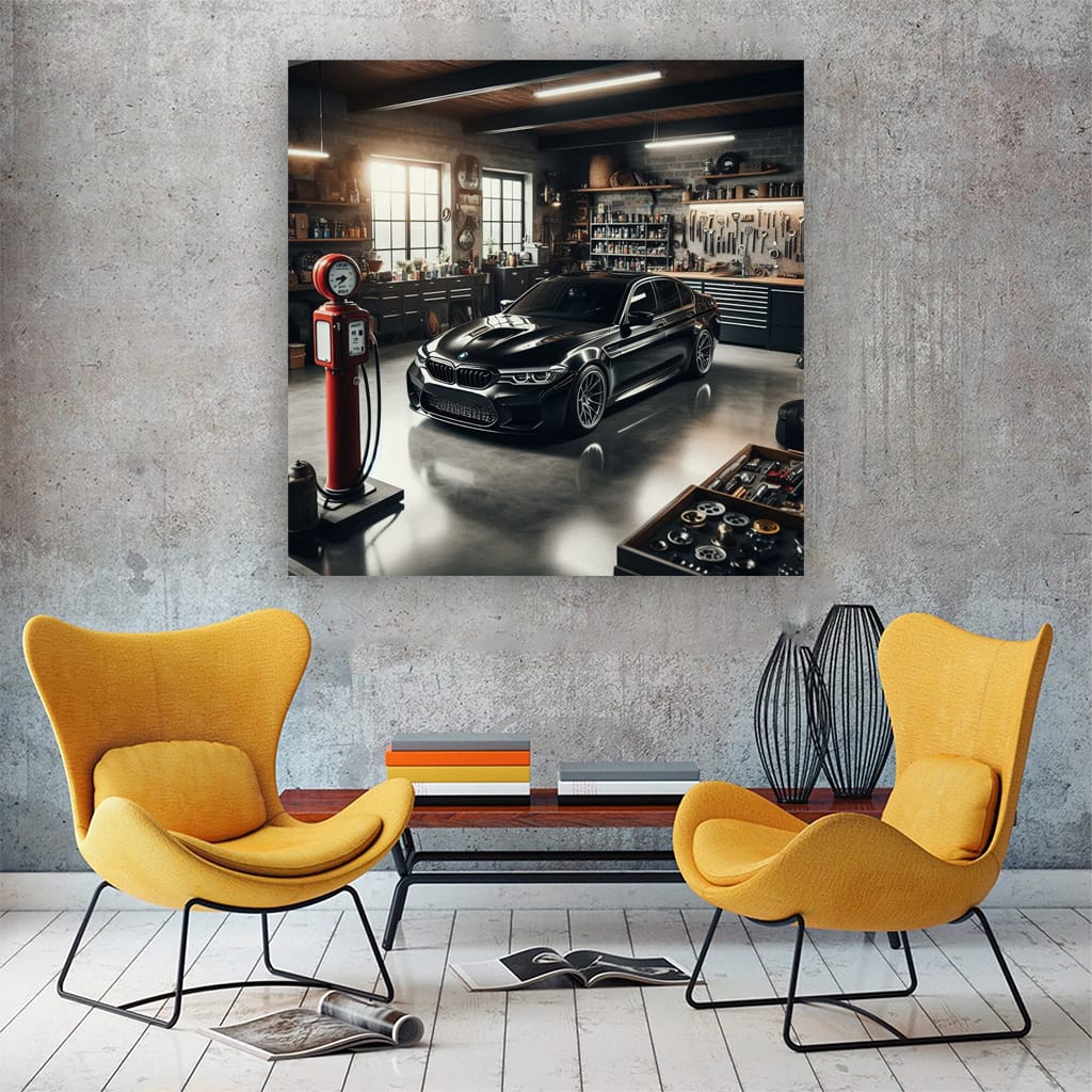 BMW M5 in Garage: Power and Elegance Unleashed Wall Art