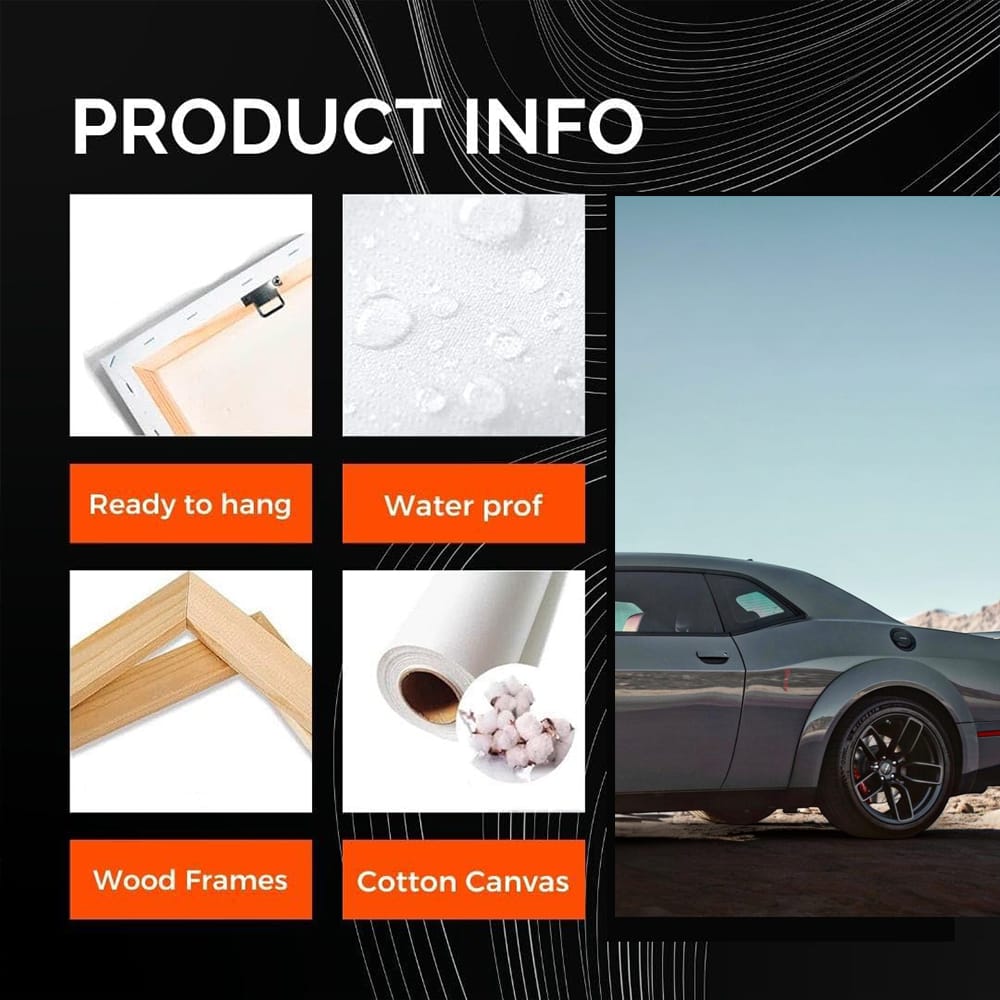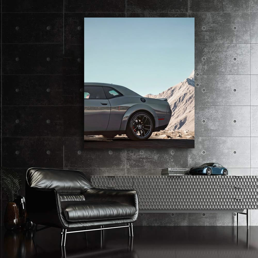 So, bro, you have a poster of a Dodge Challenger on your wall that looks like it just burst out of the mountain roads. This is not just a painting, this is pure adrenaline on your wall. Wall art for true connoisseurs of speed and power. See more from the collection: Dodge Art