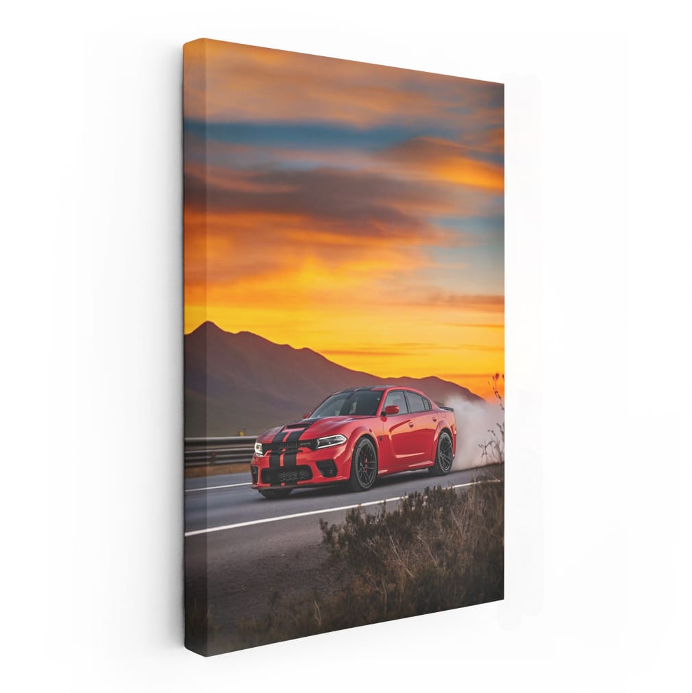 Dodge Challenger Cruising - Powerful Muscle Car on Road Wall Art