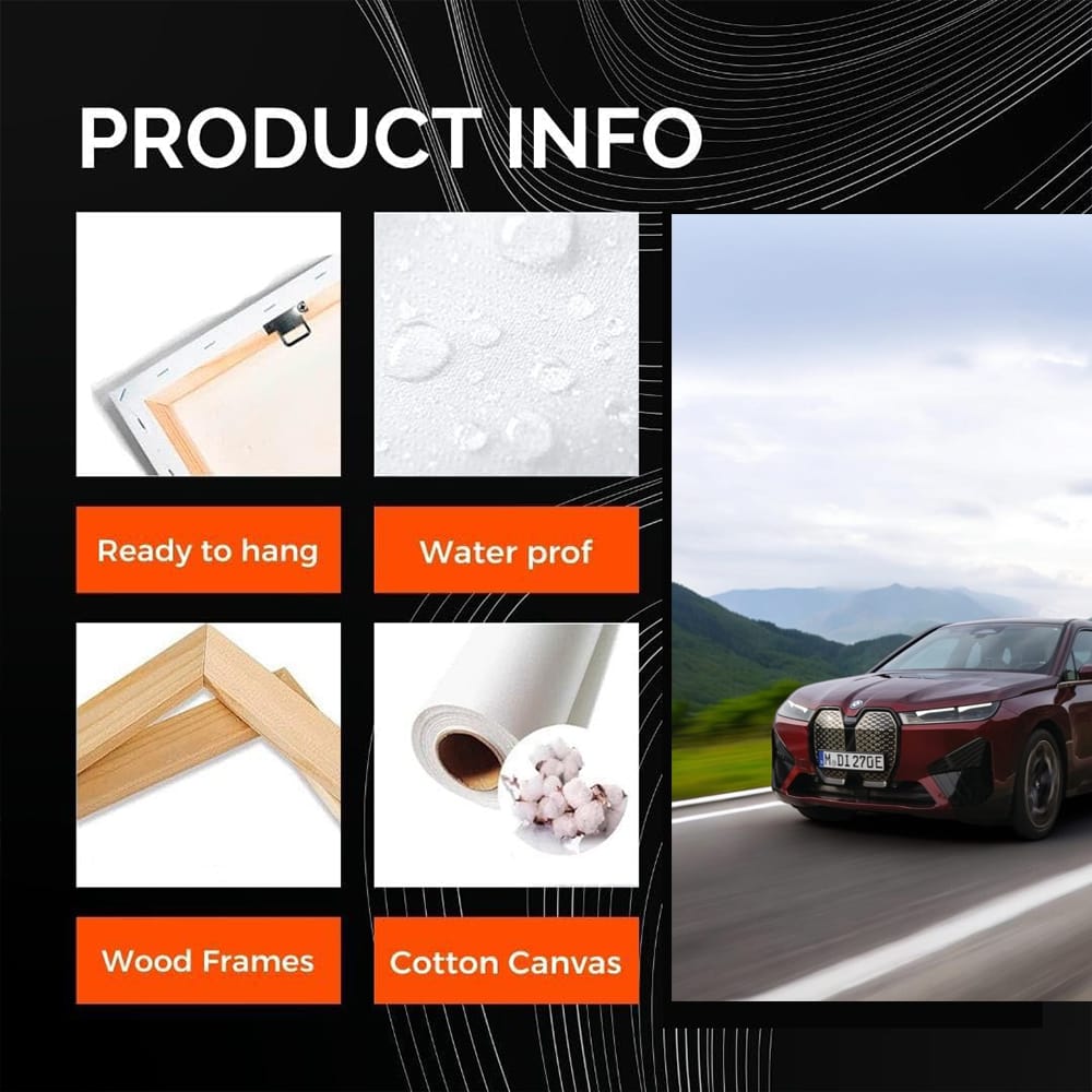 Yo, bro! Look at this poster - BMW iX in red. This is wall art for real car geeks. When you look at this painting, the engine starts by itself. Perfect for a garage or a wall in a room. See more from the collection: BMW Art