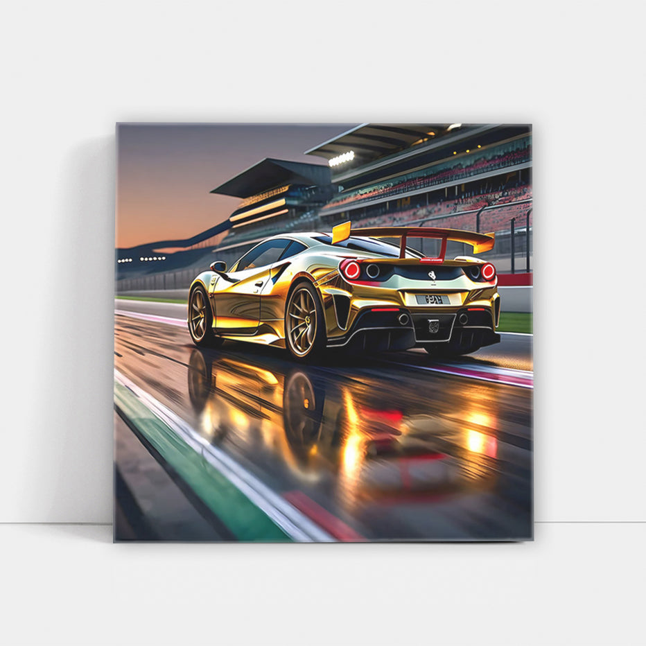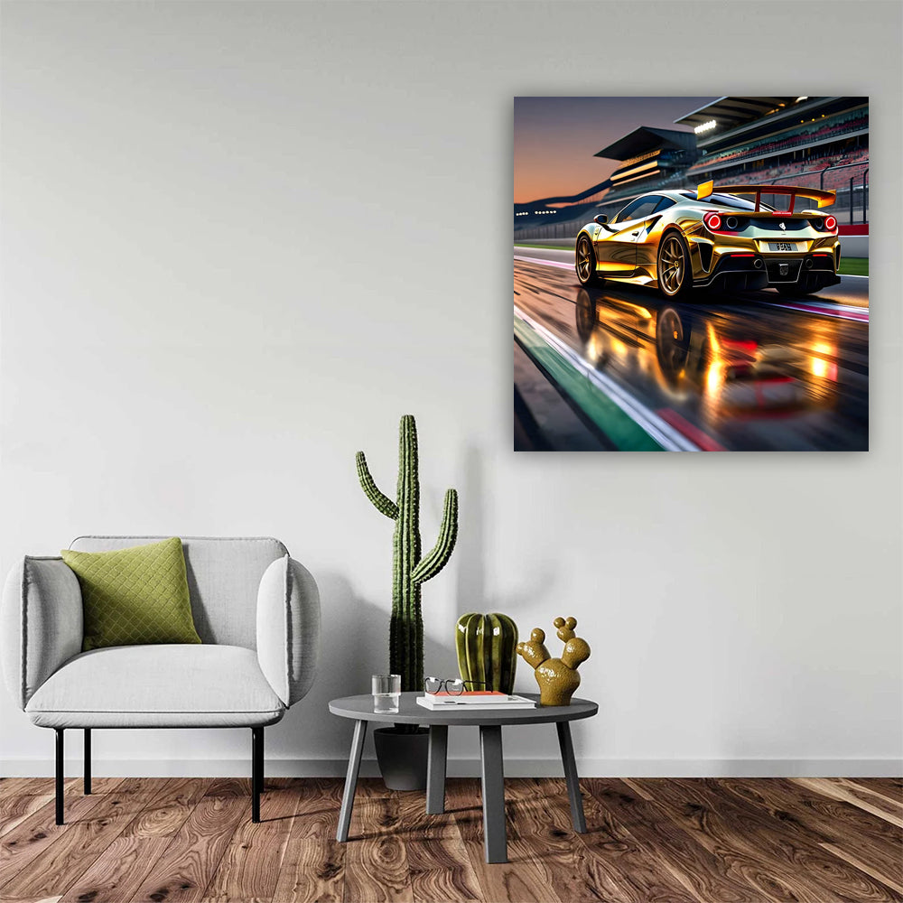 Ferrari 488 GTB in Gold at Race Track - Speed and Elegance Wall Art