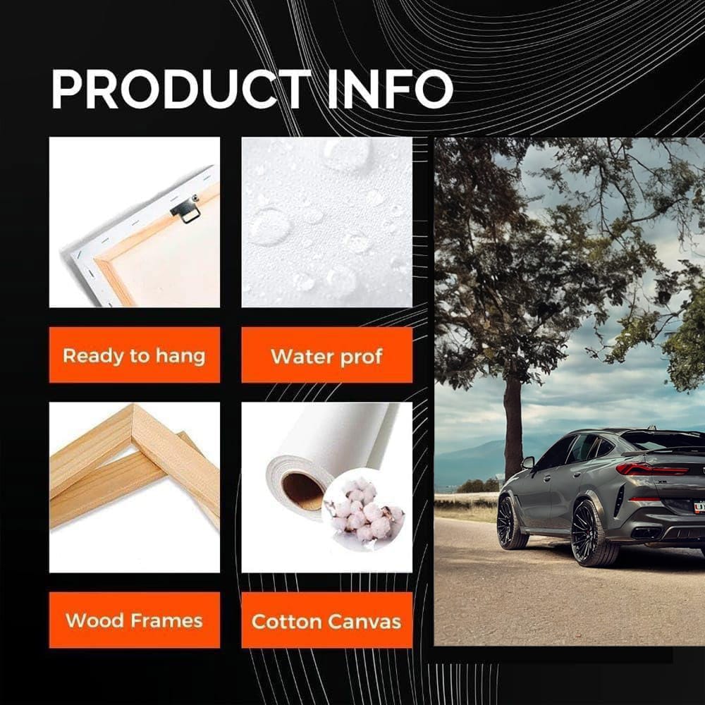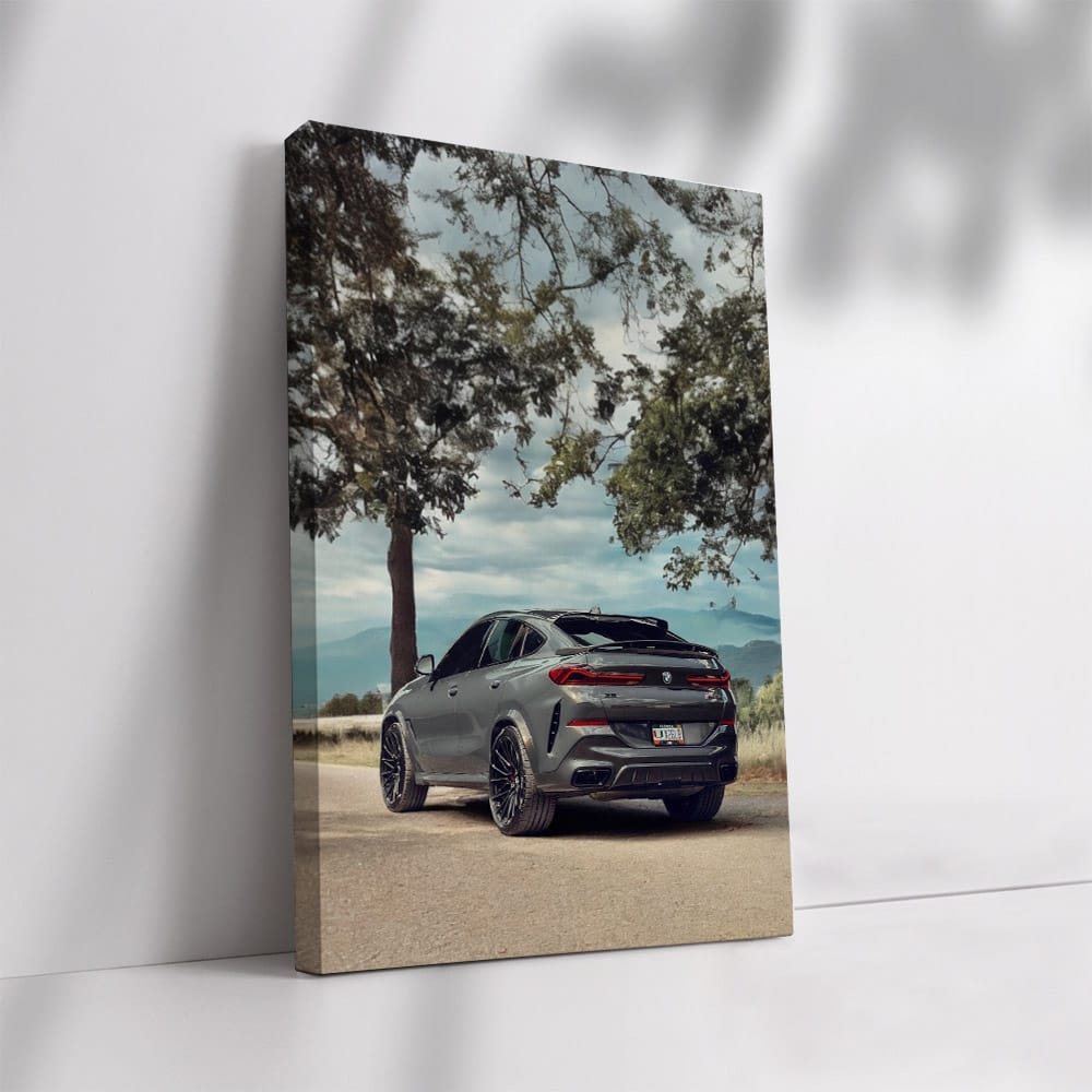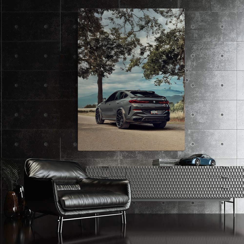 painting this, bro, a poster of a BMW X6 in grey, swinging on the wall. This is not just a painting, this is a piece of wall art that says: "I'm here to tear up the asphalt." This poster is the perfect accessory for a true car fan. See more from the collection: BMW Art