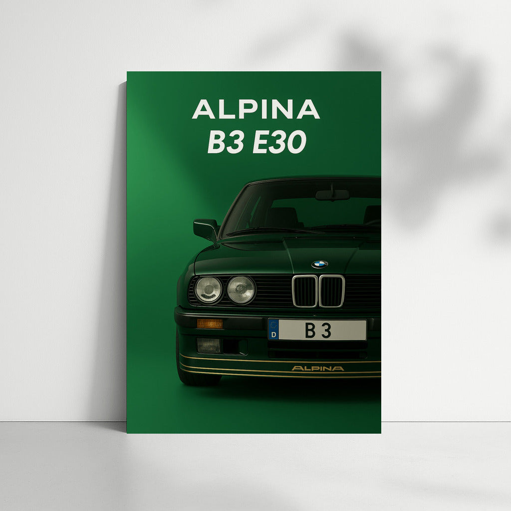 ALPINA B3 E30 poster from the Bmw 3 Series series - wall art for lovers of legendary cars. See more from the collection: BMW 3 Series Art