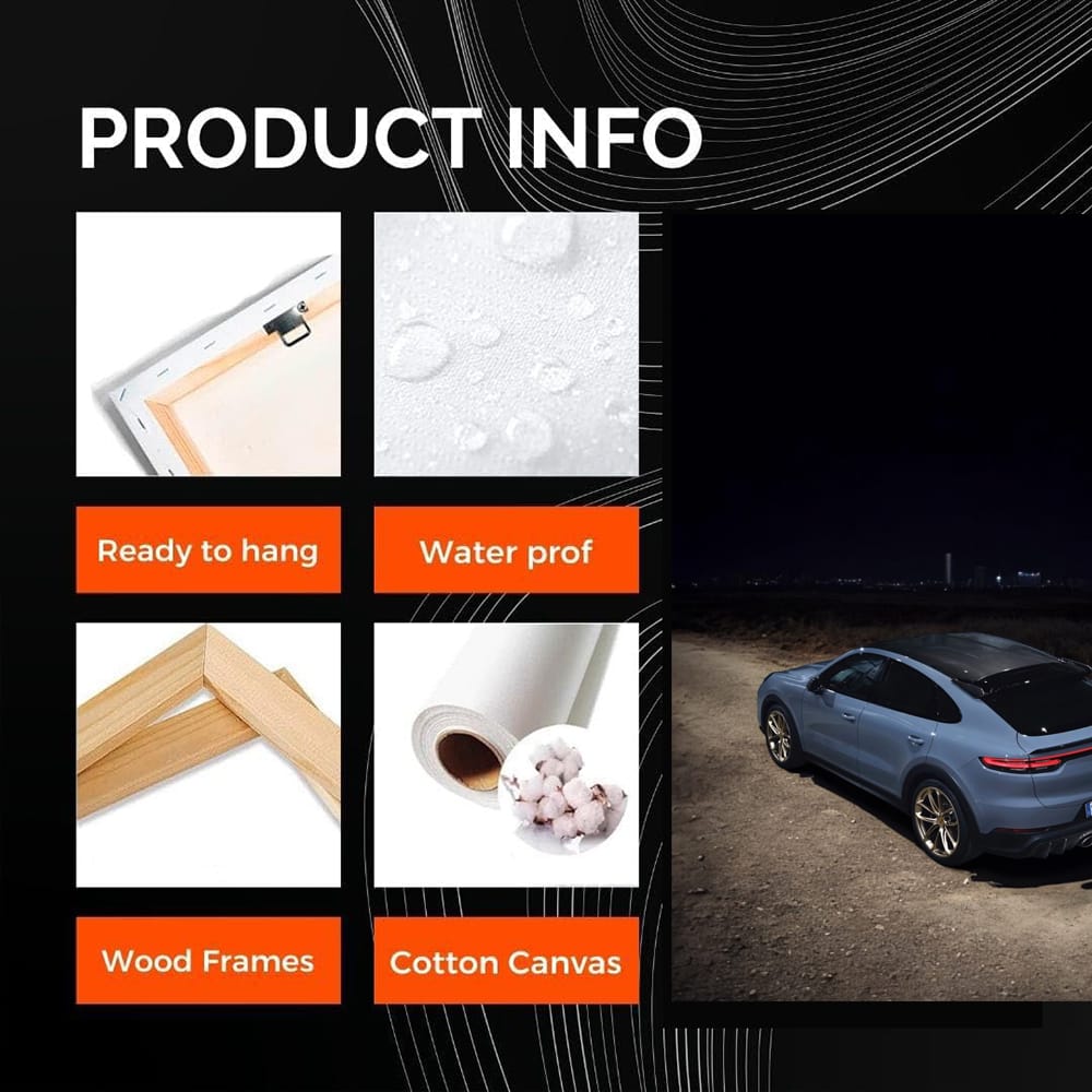 Bro, this painting with Porsche Cayenne Turbo GT is just space! This wall art is like adrenaline in the blood. Black night, the car is a beast that is ready to tear the asphalt. Hang it on the wall and feel like the king of the road. This poster is for true connoisseurs of speed. See more from the collection: Porsche Art
