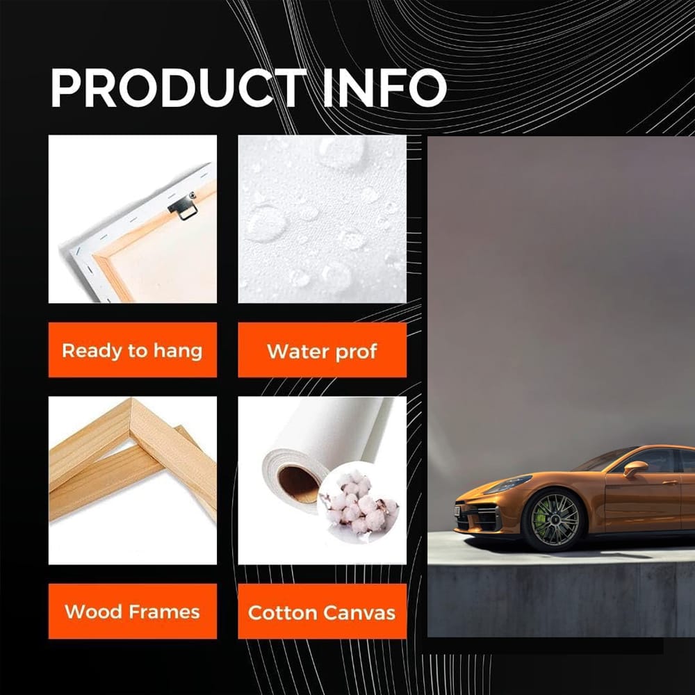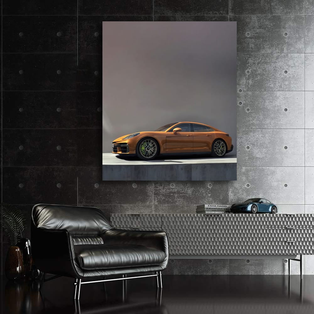 Bro, that's a masterpiece on the wall - a poster of a Porsche Panamera, like it just drove out of the parking lot. That brown beast looks absolutely hot, and wall art instantly adds a brutal touch to any room. This isn't just a painting, it's a car fanatic's dream! See more from the collection: Porsche Art