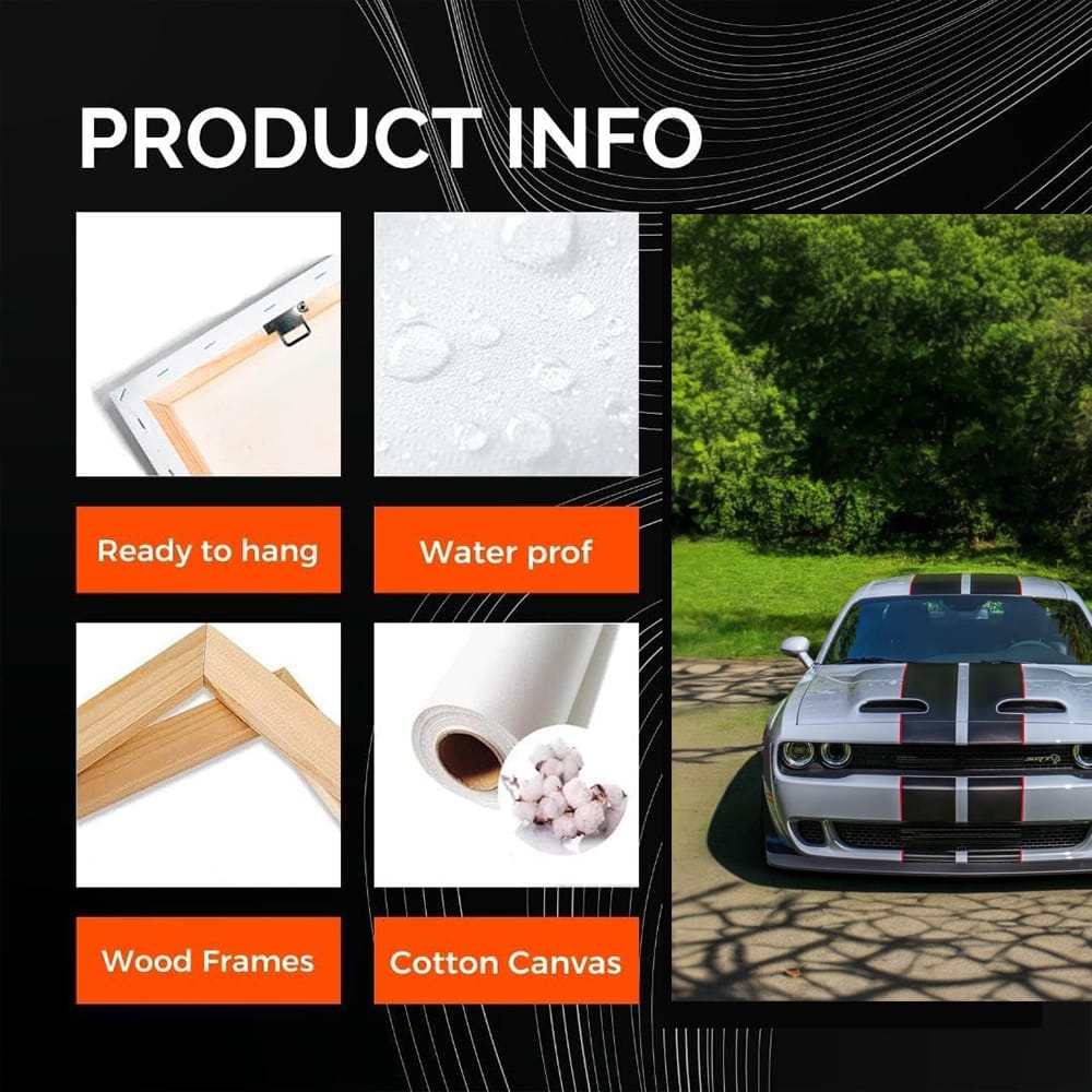 This wall art is just the bomb! A poster with a Dodge in a summer park is pure pleasure for car fans. A living painting: the engine roars, the tires are in smoke, and there is summer madness all around. If you are into speed and adrenaline, this poster must hang on your wall. See more from the collection: Dodge Art